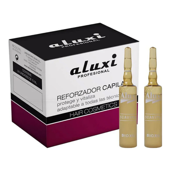 Профессиональные ампулы Suavipel Aluxi для окрашенных волос — интенсивное восстановление, защита цвета и блеск. Каждая ампула 15 мл реструктуризирует повреждённые пряди, продлевает стойкость оттенка и создаёт невидимый защитный барьер от термоприборов и внешних факторов. Идеальное решение для салонного и домашнего ухода за окрашенными волосами.