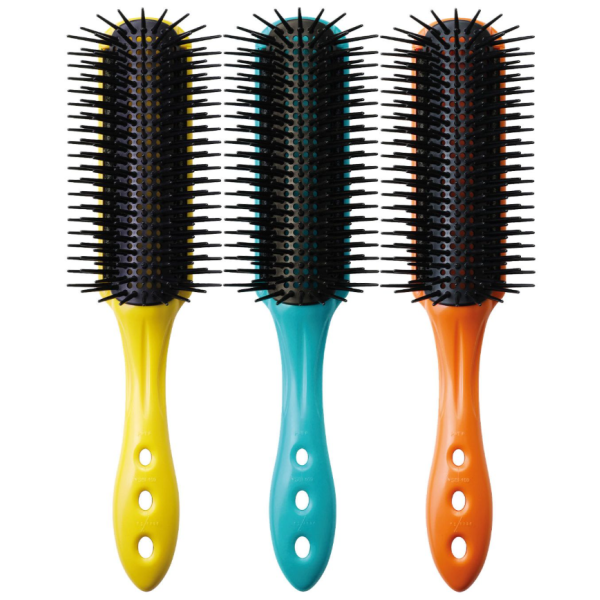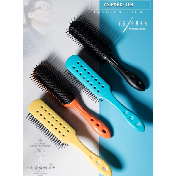 Y.S.Park YS-T09 Straight Air Styler Brush — ультра-лёгкий стайлер-браsh с 9 рядами штифтов, изготовлен из антистатичного пластика с ионным покрытием на основе углерода и турмалина. Оснащён 116 отверстиями в щёточной части и 16 вентиляционными каналами в корпусе, что обеспечивает быстрый поток горячего воздуха для ускоренной сушки без перегрева волос. Благодаря утонённой рукояти с вентиляцией и точечным рельефом обеспечивается надёжный и комфортный хват. Отличный выбор для укладки и выпрямления волос во время сушки.