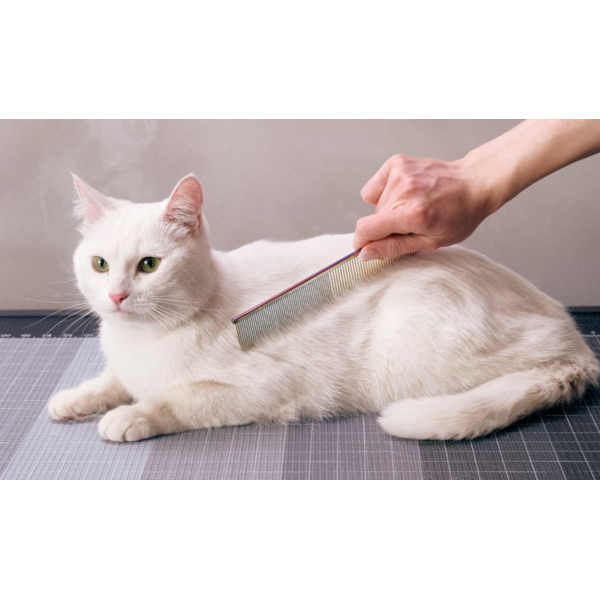 ✔️ для шерсти любого типа — гребень с частыми и редкими зубцами