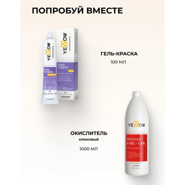 Крем-краска Yellow Pure Toners — это безаммиачный, полуперманентный тонер (краска) для волос, созданный брендом Yellow Professional. Он обеспечивает деликатное тонирование, придаёт чистый оттенок и глубокий блеск, ухаживает за волосами за счёт натуральных ингредиентов. Отлично подходит для нейтрализации нежелательных тонов, обновления цвета между окрашиваниями и создания ярких, но мягких оттенков.