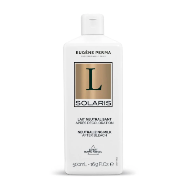 Eugène Perma Solaris Neutralizing Milk 500 мл — специализированное средство для ухода за волосами после процедуры обесцвечивания. Оно нейтрализует остаточные щёлочные компоненты, восстанавливает pH волос и кожи головы, снижает пористость и подготавливает волосы к покраске или дальнейшему уходу. Молочко действует как мягкий шампунь-кондиционер: очищает, смягчает, делает волосы послушными и облегчает расчесывание.