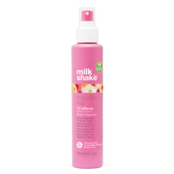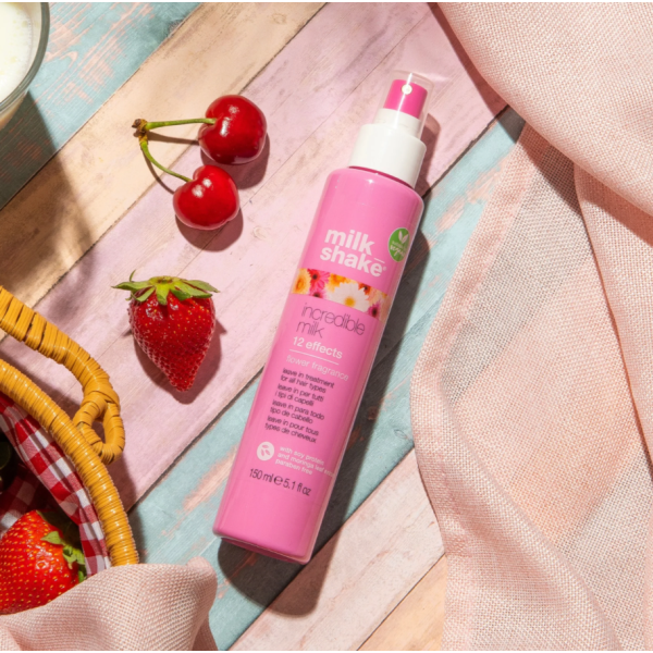 Incredible Milk Flower Fragrance — это многофункциональное несмываемое молочко-спрей с 12 эффектами. Прекрасно подходит для всех типов волос — даже тонких и окрашенных.