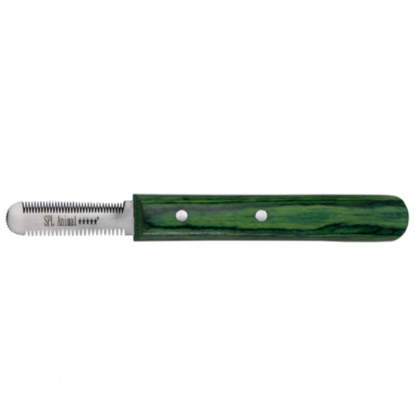 Нож для тримминга собак SPL 9944 — профессиональный инструмент длиной 145 мм, предназначенный для стриппинга шерсти у собак. Он оснащён тремя сторонами с зубчиками разной формы: широкие зубчики, узкие зубчики и короткие широкие зубчики, что позволяет эффективно работать с различными типами шерсти. Ручка длиной 100 мм выполнена из дерева, обеспечивая комфортный захват и контроль. Общая длина ножа составляет 145 мм, ширина ножа — 12 мм, а длина лезвия — 45 мм. Изготовлен из металла, что гарантирует долговечность и надёжность инструмента.