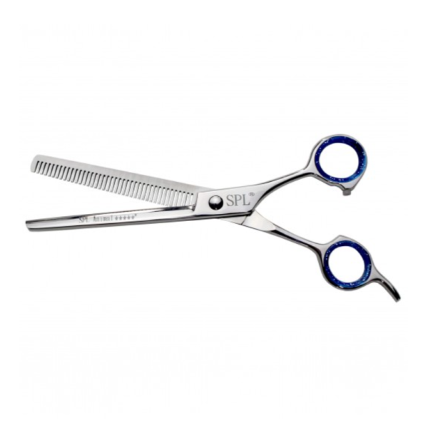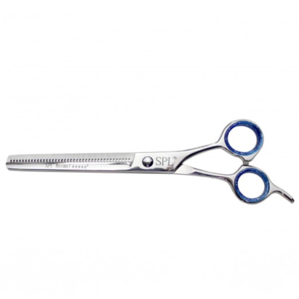 SPL 7,5″ филировочные ножницы (арт. 90073-75) — профессиональный инструмент длиной 190 мм, предназначенный для филировки шерсти у кошек и собак. Изготовлены из прочной медицинской стали, оснащены 40 зубцами для мягкой текстурной обработки, кольцами диаметром 20 мм с резиновыми вставками для комфортного хвата. Надёжность и превосходный результат при ежедневной работе.