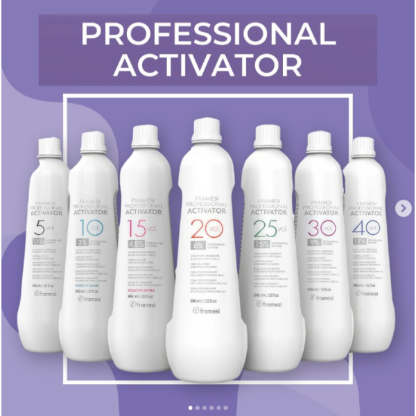 Framesi Professional Activator — профессиональная окислительная крем-эмульсия (активатор/оксидант) объёмом 946 мл, предназначенная для смешивания с профессиональными красками и осветлителями для получения стойкого, ровного и насыщенного цвета волос. Средство обладает мягкой кремовой текстурой, которая улучшает процесс проникновения пигмента в структуру волоса и обеспечивает равномерное распределение цвета на всей длине.