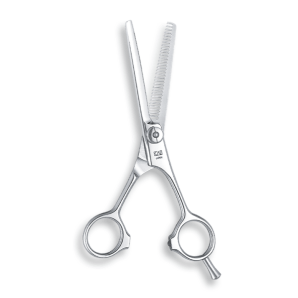 Филировочные ножницы KASHO Green KGR‑55 S T30B (5,5″), с 30 зубцами для мягкой текстуризации. Изготовлены из высокоуглеродистой японской стали VG‑10W, оснащены храповым винтом с шарикоподшипником для плавного хода и регулируемого натяжения. Полностью зеркально отполированные конвексные лезвия с внутренним углублением обеспечивает точный и лёгкий срез.