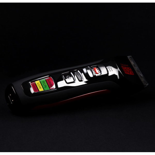 KASHO Premium Cut KPHC — стильная и мощная машинка для стрижки с титановыми лезвиями, оснащённая ЖК-дисплеем, отображающим режим работы, уровень масла и оставшееся время. Скорость вращения стандартно составляет 7 500 об/мин, а при включении турбо-режима увеличивается до 8 700 об/мин. Аккумулятор обеспечивает до 100 мин автономной работы, и устройство заряжается полностью всего за 2 часа. Можно продолжить работу, подключив питание напрямую. К комплекту входят 4 насадки длиной 3, 6, 9 и 12 мм.