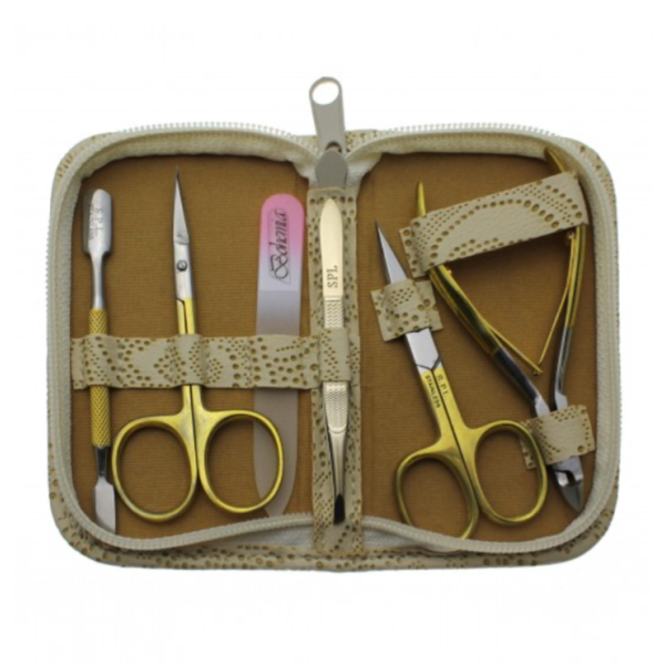 Маникюрный набор SPL «Бежевая перфорация» (серия 77100) — стильный и практичный комплект из 6 инструментов, выполненный из нержавеющей стали и упакованный в футляр из эко-кожи. Подходит как для профессионального применения, так и для домашнего ухода.