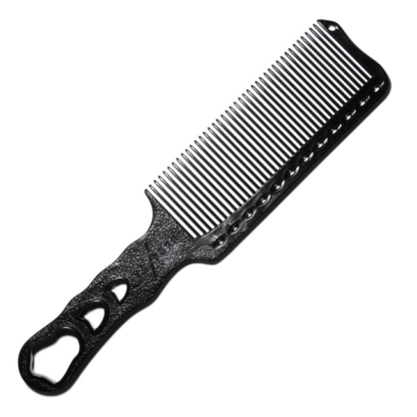 Y.S.Park YS-282 Clipper Comb — это профессиональная клипер-расческа длиной около 240 мм, разработанная для работы с техниками clipper-over-comb, включая фейды, таберы и flat-tops. Оснащена прочной, но гибкой конструкцией, верхняя часть — вогнутая (concave) для контроля угла 90° от кожи головы. Эргономичная текстурированная ручка, отверстия для вентиляции и встроенная измерительная линейка (tape-line) обеспечивают удобство и точность в работе.