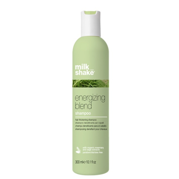 Milk Shake Energizing Blend Shampoo — шампунь с деликатной очищающей формулой на основе натуральных активных компонентов. Предназначен для мягкого очищения кожи головы и укрепления сухих и ломких волос. Обеспечивает стимуляцию микроциркуляции, предотвращает выпадение волос и придаёт жизненную силу.
