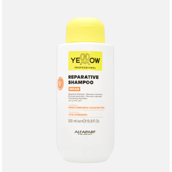 Yellow Professional Reparative Shampoo Repair — профессиональный шампунь для восстановления повреждённых, ломких и ослабленных волос. Благодаря инновационной технологии Bond Complex и питательным компонентам, шампунь мягко очищает, укрепляет структуру и подготавливает волосы к дальнейшему уходу. Формула с алоэ вера, маслом какао и гидролизованными протеинами делает волосы более эластичными, гладкими и сияющими, при этом не утяжеляя их.