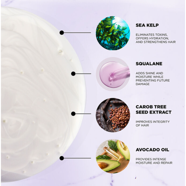 Aqua/Water/Eau, Sodium C14-16 Olefin Sulfonate, Cocamidopropyl Betaine, Glycol Distearate, Acrylates Copolymer, Hydrolyzed Ceratonia Siliqua Seed Extract, Persea Gratissima (Avocado) Oil, Squalane, Laminaria Digitata Extract, Panthenol, Disodium Laureth Sulfosuccinate, Phenoxyethanol, Caprylyl Glycol, Polyquaternium-10, Disodium EDTA, Sorbeth-230 Tetraoleate, Potassium Sorbate, Ethylhexyl Stearate, Hexylene Glycol, Decyl Glucoside, Glycerin, Sorbitan Laurate, Citric Acid, Polyquaternium-7, Zea Mays (Corn) Starch, Guar Hydroxypropyltrimonium Chloride, Fragrance (Parfum), Benzyl Benzoate, Linalool.