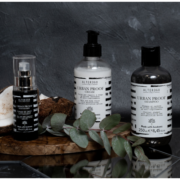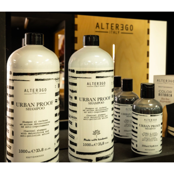 Alter Ego Urban Proof Charcoal Shampoo — детокс-шампунь с эксклюзивной формулой с технологией Urban Shield, с активированным бамбуковым углём, рассчитанный на глубокое очищение волос и кожи головы от загрязнений, себума, остатков стайлингов и частиц городской пыли/смога. Он эффективно «вытягивает» загрязнения, оставляя волосы чистыми, лёгкими и ухоженными надолго, при этом не пересушивая их. Подходит для всех типов волос, особенно для склонных к загрязнению, жирности или живущих в мегаполисах.