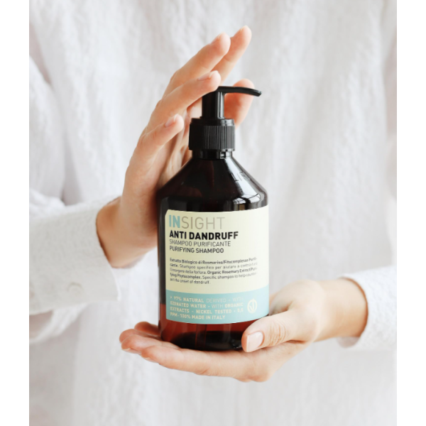 Insight anti dandruff purifying shampoo — глубоко очищающий шампунь против перхоти, разработанный для всех типов волос. Он эффективно устраняет видимые проявления перхоти, нормализует работу сальных желёз и успокаивает кожу головы, при этом обеспечивая ощущение свежести и легкости. Формула с натуральными растительными экстрактами обладает антисептическим, антибактериальным действием и способствует восстановлению здорового баланса кожи головы.