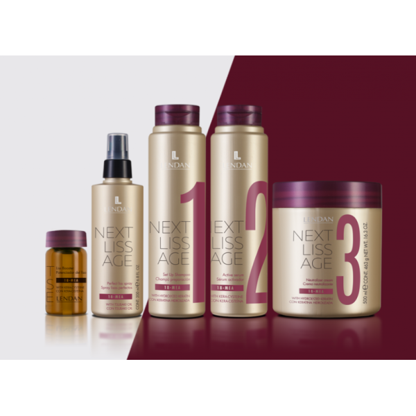 Спрей Lendan Next Liss Age Perfect Liss (200 мл) — это несмываемый термозащитный и выпрямляющий спрей, который продлевает эффект разглаживания волос до 10 недель. Он помогает уплотнить кутикулу волос, защищает их от высокой температуры при работе феном, утюжком или плойкой, придаёт блеск и контролирует пушение. Формула содержит амодиметикон и масло японской камелии (tsubaki), которые смягчают, питают и придают волосам ухоженный вид.