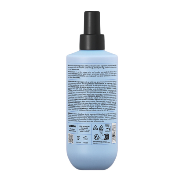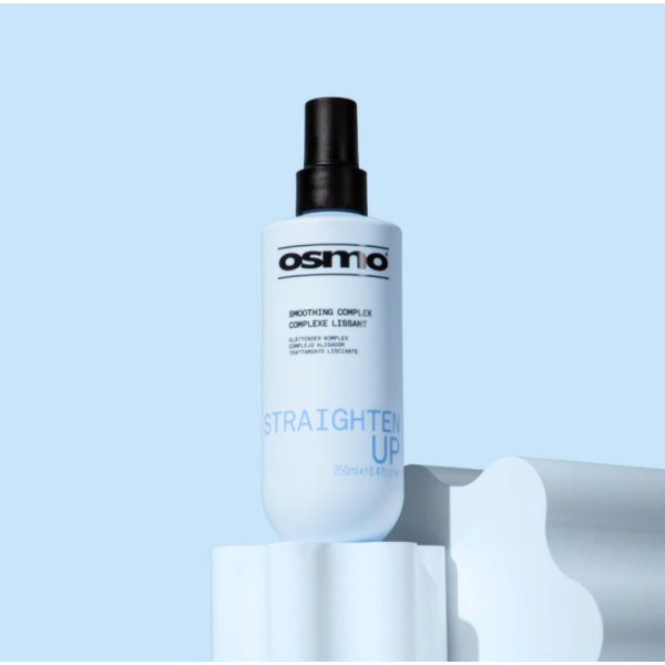 Спрей для разглаживания волос Straighten Up New Osmo — профессиональное средство для создания гладкой и дисциплинированной укладки без пушистости. Формула средства помогает выпрямить непослушные волосы и сохранить эффект гладкости до следующего мытья головы при использовании утюжка. Спрей активируется при воздействии тепла и работает совместно с феном или утюжком, помогая зафиксировать прямую форму волос, уменьшить пушистость и придать прядям естественный блеск.