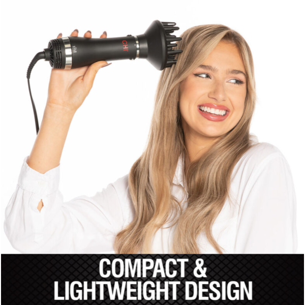 4-в-1 стайлер-щётка CHI Blowout Brush с керамической и ионной технологией. Создаёт профессиональный объём у корней, гладкость и блеск одним движением. Четыре сменные насадки для прямых, волнистых и кудрявых укладок + отрицательные ионы для уменьшения пушистости. Лёгкая и компактная — идеальна для быстрой салонной укладки дома.