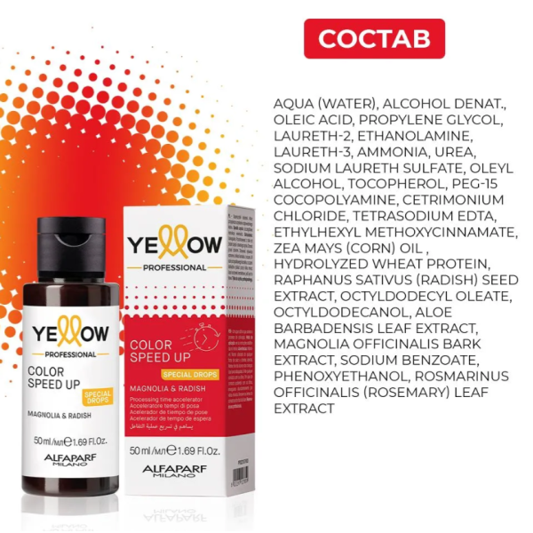 Yellow Color Speed Up — професійна добавка-прискорювач, яку змішують із фарбою та оксидом. Прискорює розкриття пігменту, скорочує час витримки та допомагає отримати більш рівний, насичений і стійкий відтінок. Дбайлива формула з доглядовими компонентами робить фарбування ефективнішим, але не агресивнішим.