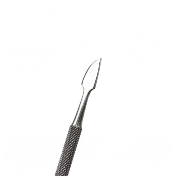 Двостороння лопатка-пушер SPL 9156 — це інструмент для догляду за кутикулою та нігтьовою пластиною, виготовлений з медичної нержавіючої сталі. Вона допомагає акуратно відсунути кутикулу та очистити нігтьову пластину від забруднень, роблячи процес манікюру більш ефективним. Дизайн лопатки передбачає дві робочі сторони — «лопатка» і «пушер/скребок», що робить її універсальним інструментом.