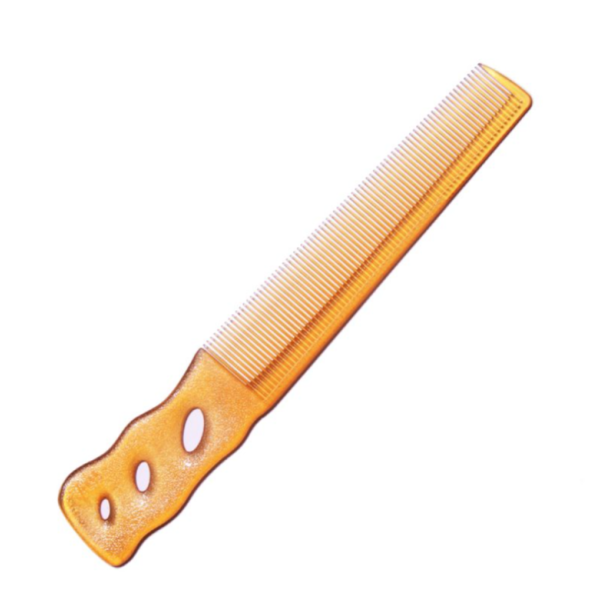 Y.S.Park YS-231 Barber Comb — професійний гребінець довжиною ~165 мм, виготовлений із міцного ультем-пластику з високою термостійкістю (до 220 °C / 428 °F). Він поєднує гнучкість завдяки вбудованим вентиляційним отворам і легкість корпусу, що дозволяє ідеально притискати гребінець до голови без зайвого тиску. Підходить для технік "clipper-over-comb" та роботи з короткими стрижками, забезпечуючи точність і комфорт.