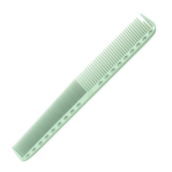 Професійний гребінець Y.S.Park YS-335 Cutting Comb — це інструмент довжиною 215 мм, виготовлений із високоякісного термостійкого пластику Ultem. Оснащений квадратними зубцями середньої щільності, що забезпечують м’яке ковзання та комфортне захоплення волосся. Укорочений перший зубець (Parting Space Head) полегшує початок розділення волосся, а отвори на корпусі виконують функцію вимірювальної лінійки та додають додатковий контроль при захопленні.