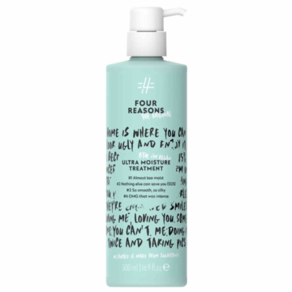 Ultra Moisture Treatment FOUR REASONS — професійна суперзволожувальна маска-treatment, створена для глибокого зволоження та живлення сухого, пористого або пошкодженого волосся. Вона насичує вологою, покращує текстуру, робить волосся більш гладким, м’яким і легким у розчісуванні, зберігаючи при цьому блиск і колір.