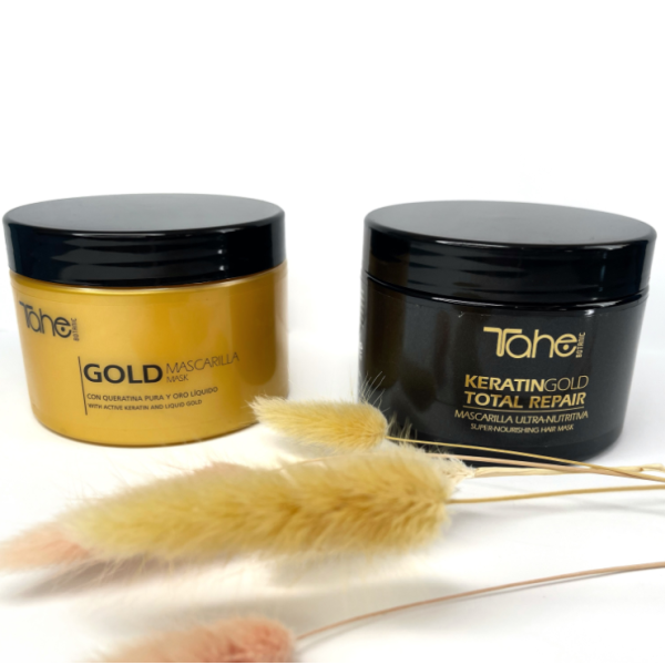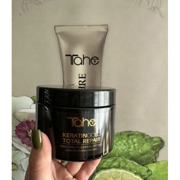 Keratin GOLD Total Repair Mask Tahe — професійна відновлювальна маска з кератином, аргановою олією та керамідами, створена для інтенсивного зміцнення, реконструкції та глибокого живлення волосся будь-якого ступеня пошкодження. Засіб допомагає відновити баланс кератину, зміцнити структуру волосся, надати гладкості та дзеркального блиску, роблячи волосся м’яким та еластичним вже після першого застосування.
