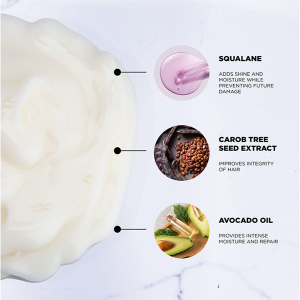 Aqua/Water/Eau, Cetearyl Alcohol, Glycerin, Cetyl Alcohol, Propanediol, Amodimethicone, Behentrimonium Chloride, Stearamidopropyl Dimethylamine, Persea Gratissima (Avocado) Oil, Squalane, Panthenol, Xylitylglucoside, Anhydroxylitol, Xylitol, Dimethicone, Glycolic Acid , Caprylyl Glycol, Phenoxyethanol, Cetrimonium Chloride , Polyquaternium-37, Propylene Glycol Dicaprylate/Dicaprate, Guar Hydroxypropyltrimonium Chloride, Trideceth-10, PCA Dimethicone, Potassium Sorbate, PPG-1 Trideceth-6, Hexylene Glycol, Ethylhexyl Stearate, Butylene Glycol, Linoleamidopropyl PG-Dimonium Chloride Phosphate, PEG-8 Dimethicone, Decyl Glucoside, Fragrance (Parfum), Benzyl Benzoate, Linalool.