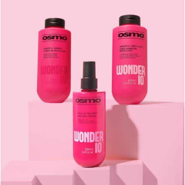 Кондиціонер інтенсивний живильний для волосся Wonder 10 New Osmo 400 мл — професійний засіб для глибокого живлення, зволоження та відновлення сухого і пошкодженого волосся. Формула розроблена з використанням технології OSMO Fibre Bond, яка допомагає зміцнити структуру волосся, відновити пошкоджені ділянки та зробити волосся більш стійким до ламкості. Кондиціонер ефективно розгладжує кутикулу, покращує текстуру волосся та надає йому природного об’єму й блиску без обтяження. Засіб поєднує одразу кілька функцій догляду, забезпечуючи м’якість, гладкість і легкість розчісування, роблячи волосся візуально більш здоровим і доглянутим.