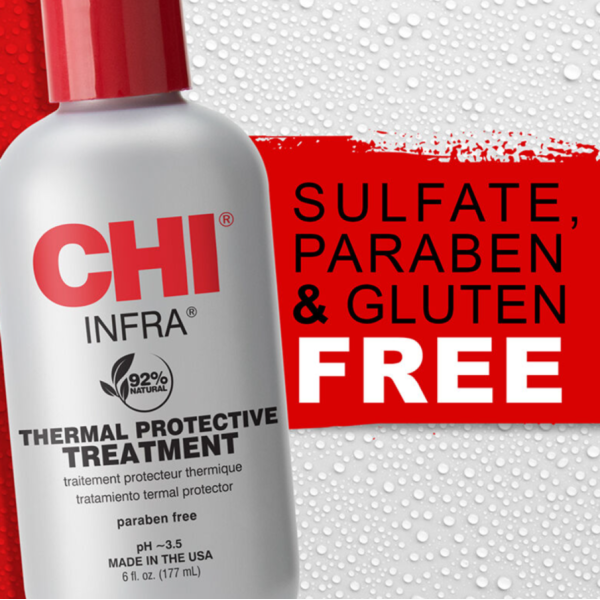 CHI Infra Treatment — це професійний зволожувальний кондиціонер із термозахистом, який відновлює волосся, захищає його від теплового впливу та покращує загальний стан. Формула з гідролізованим шовком, кератином і технологією Cationic Hydration Interlink допомагає глибоко зволожувати волосся, зміцнювати його структуру та утримувати вологу всередині. Засіб працює як універсальний догляд: зволожує, розгладжує і водночас захищає волосся під час укладання феном або праскою, зменшуючи ризик пошкоджень.