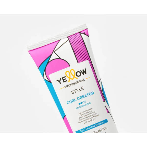 Крем Yellow Professional Style Curl Creator 250 мл — засіб середньої фіксації, призначений для підсилення, контролю та розділення локонів. Має легку текстуру, не обтяжує волосся і не склеює пасма. Ідеально підходить для кучерявого та хвилястого волосся, надаючи максимальну чіткість і природний вигляд. Формула крему включає систему захисту 360° Defence System, комплекс Aloetrix та олію зеленої кави, забезпечуючи зволоження та захист від зовнішніх факторів.