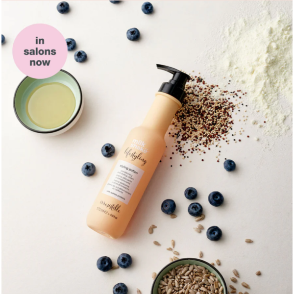 Styling Potion Lifestyling Milk Shake — легкий крем-кондиціонер для укладання, що створює м'яку фіксацію і відразу доглядає за волоссям. Формула делікатно розгладжує кутикулу, надає волоссю природного об'єму і ефекту, що кондиціонує. Підходить для всіх типів волосся, включаючи пофарбоване, допомагає легко моделювати укладання та надавати текстуру пасмам без відчуття липкості та тяжкості.