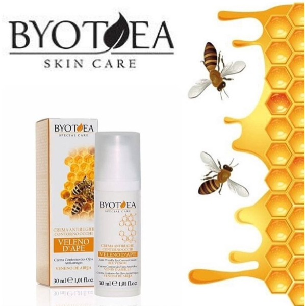 Профілактичний крем для шкіри навколо очей Byotea (бджолина отрута) - легка, ніжна текстура, підтягує та зменшує кількість зморшок, допомагає боротися з мішками та темними кругами навколо очей, знімає припухлість з повік. Робить область навколо очей візуально гладкішою.