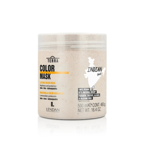 Маска Lendan Terra Color — це живильний та відновлювальний засіб для фарбованого волосся. Формула, збагачена амлою, рисом та ашвагандою, забезпечує інтенсивний догляд, підтримує яскравість відтінку та захищає волосся від зовнішніх агресивних факторів.