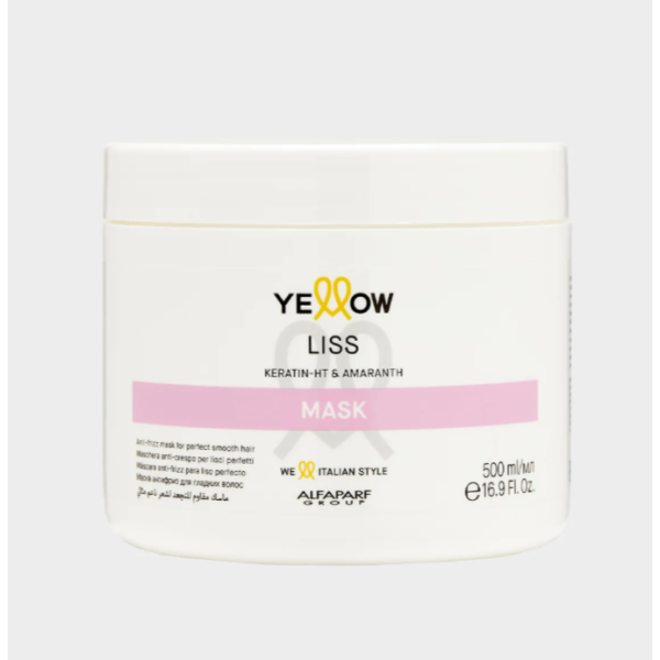 Маска Liss від бренду Yellow Professional об’ємом 500 мл — це концентрований засіб із глибоким живленням і розгладжувальним ефектом для неслухняного, пористого або кучерявого волосся. Формула містить високоякісний кератин Keratin-HT і олію амаранту, які наповнюють структуру волосся, роблячи її щільнішою, еластичнішою та гладкою. Після застосування волосся менше пухниться, легше укладається та набуває доглянутого блиску.