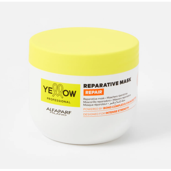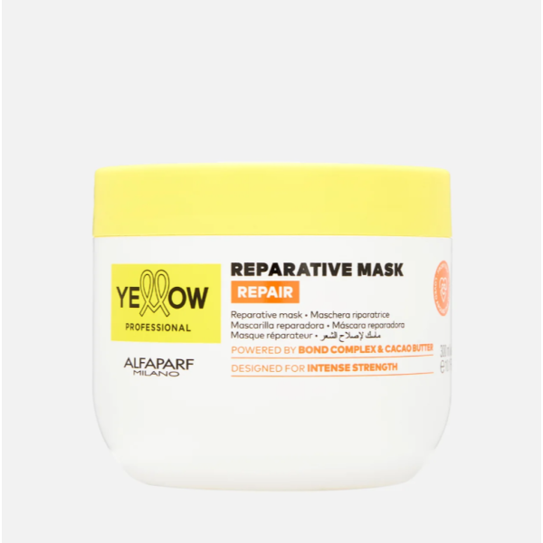 Yellow Professional Reparative Mask Repair — професійна маска для відновлення пошкодженого, ослабленого та фарбованого волосся. Завдяки технології Bond Complex, Aloetrix та активним інгредієнтам, таким як масло какао та гідролізовані протеїни, маска глибоко відновлює структуру волосся, надає йому еластичність, блиск і захищає від подальших пошкоджень.