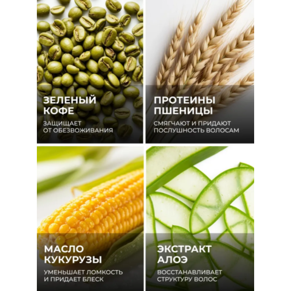 - активні інгредієнти: Гідролізований пшеничний протеїн, олія зеленого кави, Алоетрикс