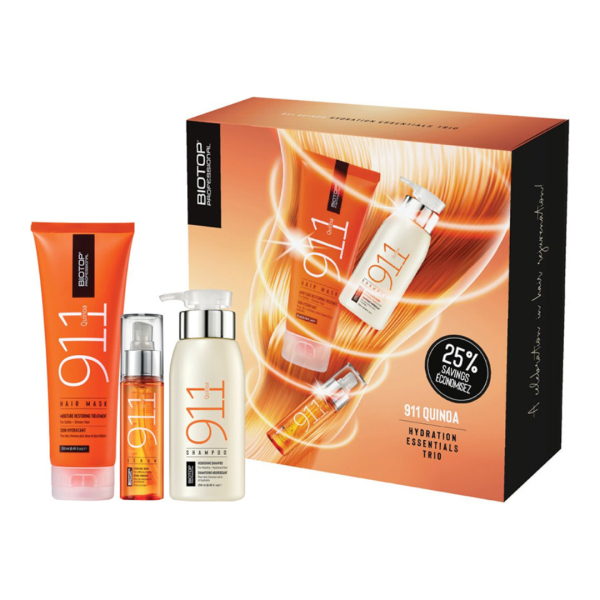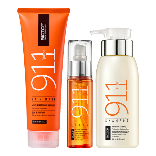 Набір для волосся з протеїнами кіноа Holiday Quinoa 911 Biotop — це комплекс із трьох професійних засобів, розроблених для глибокого живлення, відновлення та зволоження волосся. До набору входять шампунь, маска та незмивна сироватка, усі з активними компонентами на основі протеїнів кіноа, які зміцнюють структуру волосся, покращують його еластичність, роблять пасма м’якими та сяйливими, а також полегшують розчісування й укладання. Цей набір ідеально підходить для догляду в домашніх умовах і як подарунковий варіант.