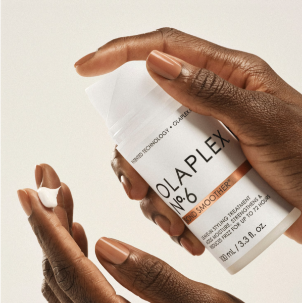 Нанесіть невелику кількість крему Olaplex No.6 на чисте вологе або сухе волосся → Рівномірно розподіліть по всій довжині, приділяючи увагу кінчикам → Не змивайте — засіб працює як незмивний догляд → Приступайте до укладки або сушіння