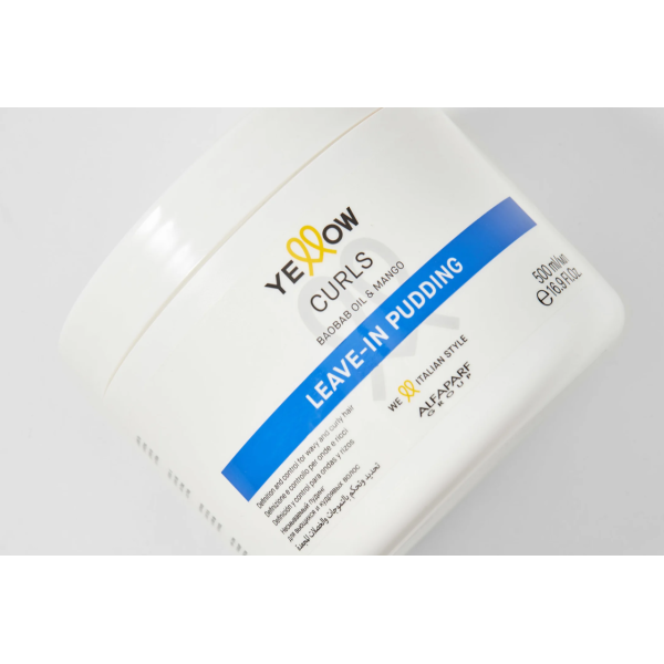 Yellow Curls Leave‑In Pudding 500 мл — професійний засіб у форматі незмивного пудингу‑крему, спеціально створений для хвилястого, кучерявого та пухнастого волосся. Формула забезпечує інтенсивне зволоження, контроль форми локонів, захист від теплового впливу та зменшення ефекту «фриза». Підходить для домашнього та салонного догляду.