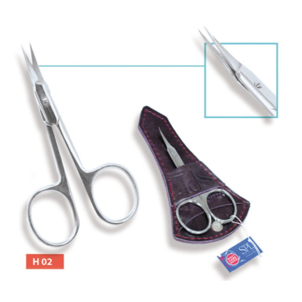 SPL ножиці для кутикули H02 — спеціалізований манікюрний інструмент довжиною близько 90 мм, розроблений для акуратної обробки кутикули та дрібних ділянок. Виготовлений із високоякісної медичної нержавіючої сталі та оснащений професійним ручним заточуванням, що забезпечує тривалу гостроту. Вигнута вузька форма лез дозволяє легко дістатися до важкодоступних зон, а у комплекті йде шкіряний чохол — зручно та надійно.