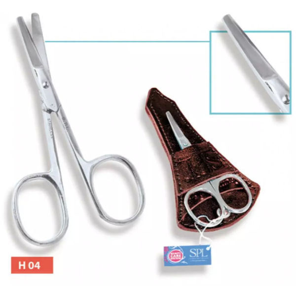 Манікюрні ножиці SPL H04 — професійний інструмент дитячого/гігієнічного призначення, довжиною близько 90 мм, з робочою частиною довжиною приблизно 28 мм. Вони створені для безпечного та комфортного підрізання маленьких нігтів, не пошкоджуючи нігтьову пластину та не викликаючи дискомфорту. Виготовляються з міцної медичної сталі, стійкої до корозії, проходять професійне ручне заточування та вакуумну термообробку, завдяки чому інструмент служить довго. Комплектується практичним шкіряним чохлом для зберігання.