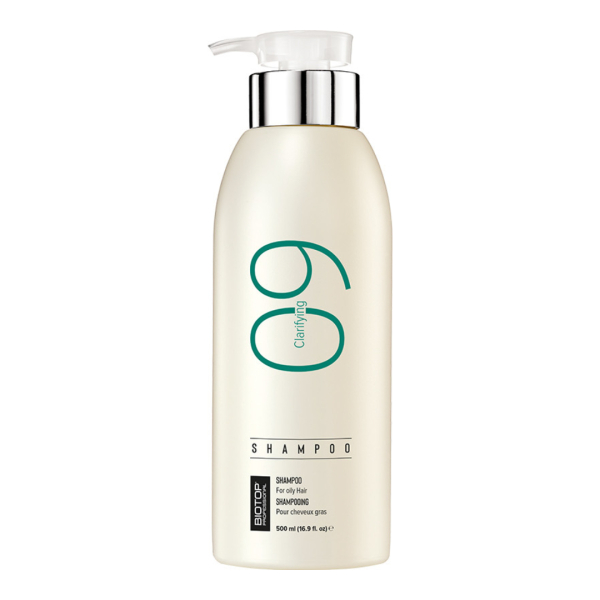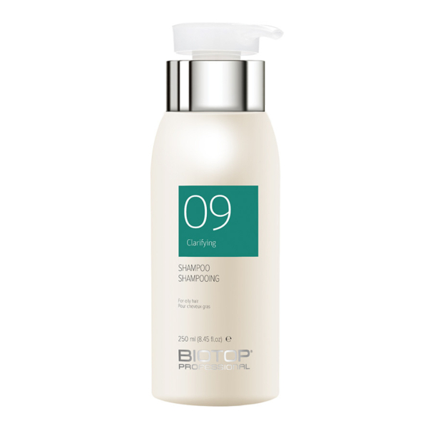 Очищаючий шампунь BIOTOP 09 – ідеальне рішення для догляду за жирною шкірою голови. Ефективно усуває всі види забруднень: частинки ороговілого епідермісу, залишки стайлінгових засобів, пил, надлишок себуму. Не вимиває пігмент із фарбованого та освітленого волосся. Максимально довго зберігає насичений, рівний тон. Азелаїнова кислота нормалізує вироблення шкірного сала, не пересушуючи волосся. Допомагає збалансувати рівень pH, завдяки чому локони значно довше залишаються м’якими, об’ємними та шовковистими. Шампунь чудово піниться, для ефективного миття достатньо мінімальної кількості.
