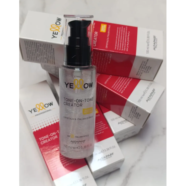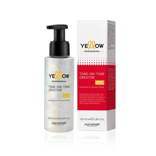 Yellow Professional Tone‑On‑Tone Creator 100 мл — це адитив (додатковий засіб), який змішується з постійною фарбою Yellow Professional і знижує її лужність, перетворюючи фарбування на м’яке тон-в-тон. Він насичений кристалами та цитрусовими фруктами, що надає волоссю мінерали та сприяє більш делікатному впливу на структуру волосся.