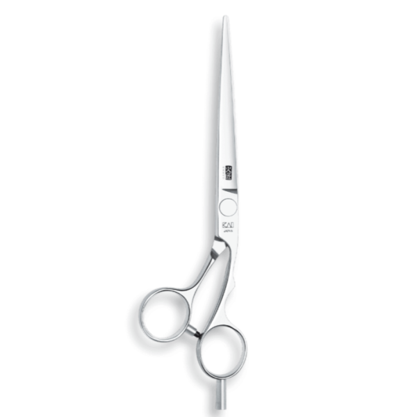 KASHO Silver KSI OS — це прямі ножиці з offset-дизайном, виготовлені з високоміцної японської сталі ATS-314, що відображає дзеркальне полірування. Особлива увага приділена комфортному хвату: ручка offset знижує навантаження на кисть, передпліччя та лікоть, підвищуючи керованість. Механіка включає ratchet flat-head screw для швидкого та точного регулювання натягу.