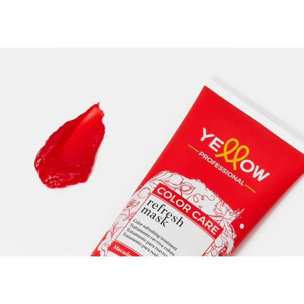 Color Care Refresh Mask Yellow Professional — це поживна пігментована маска, створена для фарбованого волосся: вона допомагає підтримувати або оновлювати відтінок, підсилювати сяйво та продовжувати стійкість кольору між салонними процедурами. Формула асоціюється з лінійкою «Colour Care / Color Care», яка діє як щит проти зовнішніх чинників, що сприяють швидкій втраті насиченості кольору.