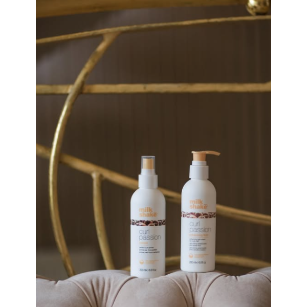 Primer Curl Passion Milk Shake — легкий незмивний праймер спеціально для кучерявого і хвилястого волосся. Зволожує, розгладжує, підкреслює форму завитків та полегшує укладання. Захищає від термодії та пушіння, робить локони еластичними, живими та блискучими.