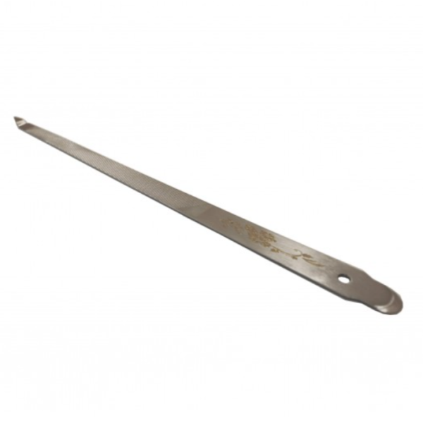 Металева пилка SPL 9830 виготовлена з міцної нержавіючої сталі та призначена для акуратної обробки нігтів і корекції форми. Ідеальна для роботи з боковими краями та дрібними деталями, має високу міцність, легко очищується й дезінфікується.