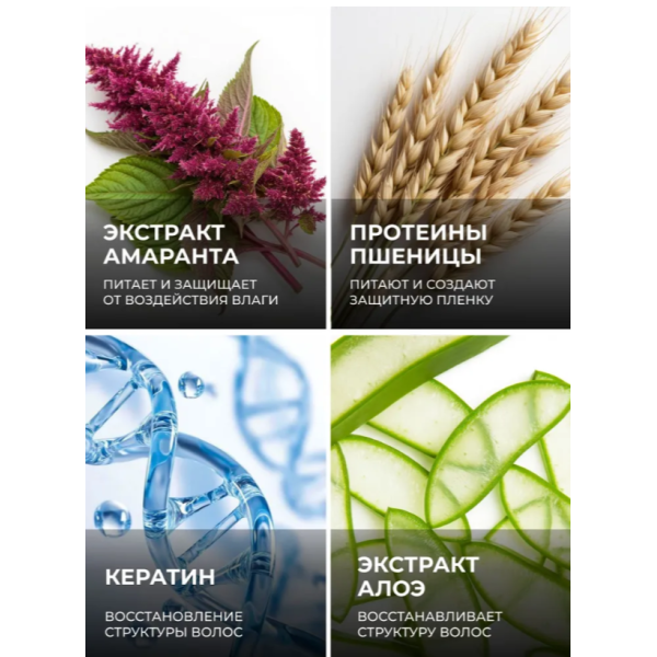 - активні інгредієнти: Keratin-HT, олія амаранту