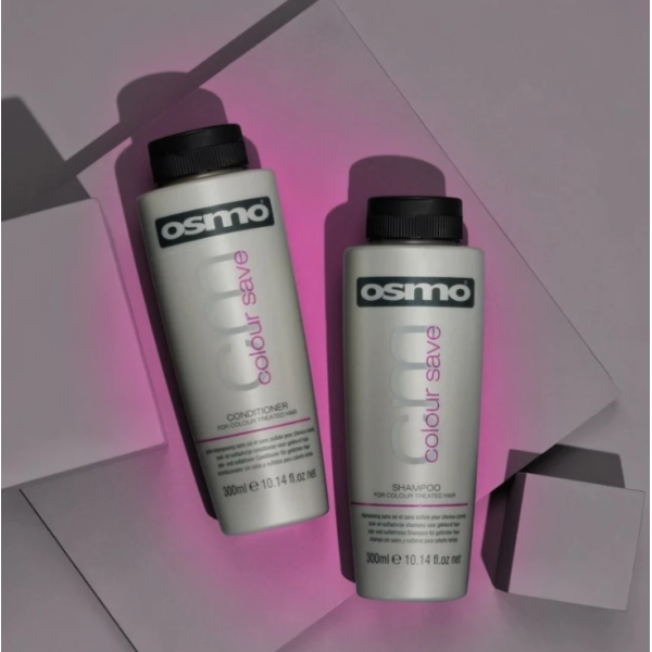 Шампунь для фарбованого волосся Colour Save від Osmo, 300 мл — професійний засіб для делікатного очищення та збереження насиченості кольору після фарбування. Безсульфатна формула м’яко очищає волосся і шкіру голови, не пошкоджуючи пігмент і структуру волосся. Шампунь містить UV-фільтри та вітамін Е, які захищають колір від вимивання та вигорання, а також сприяють зміцненню волосся і збереженню його яскравості. Активні компоненти (зокрема олії льону та соняшника) допомагають відновити пошкоджені ділянки, надають волоссю гладкість, блиск і доглянутий вигляд.